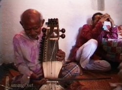 This video is of a meeting in his house in Dholpur. He was a bit worse for wear, having been playing Holi with the local children. He played my sarangi, and I followed his stream of consciousness from rag to rag, then we talked about life and music: