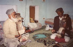 This next series is from a visit on October 5th, 1996. The first video shows Ghulam Sabir Qadri tuning, his students Karam Waris Khan and Akram Hussain practising,and various home activities—life in a musical household: